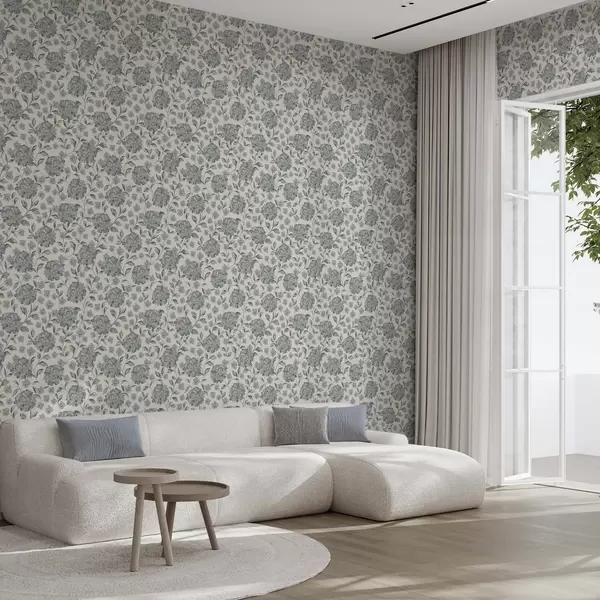 Papel pintado Flores y hojas frondosas en una paleta de colores gris azulados Nr. a00778