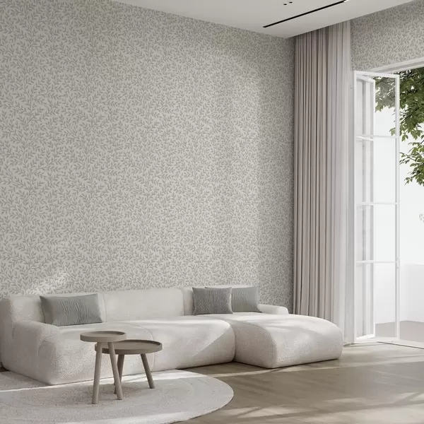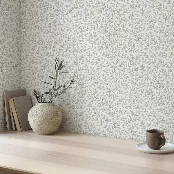 Papel pintado Ramitas con hojas y bayas, crema clara y salvia Nr. a00783