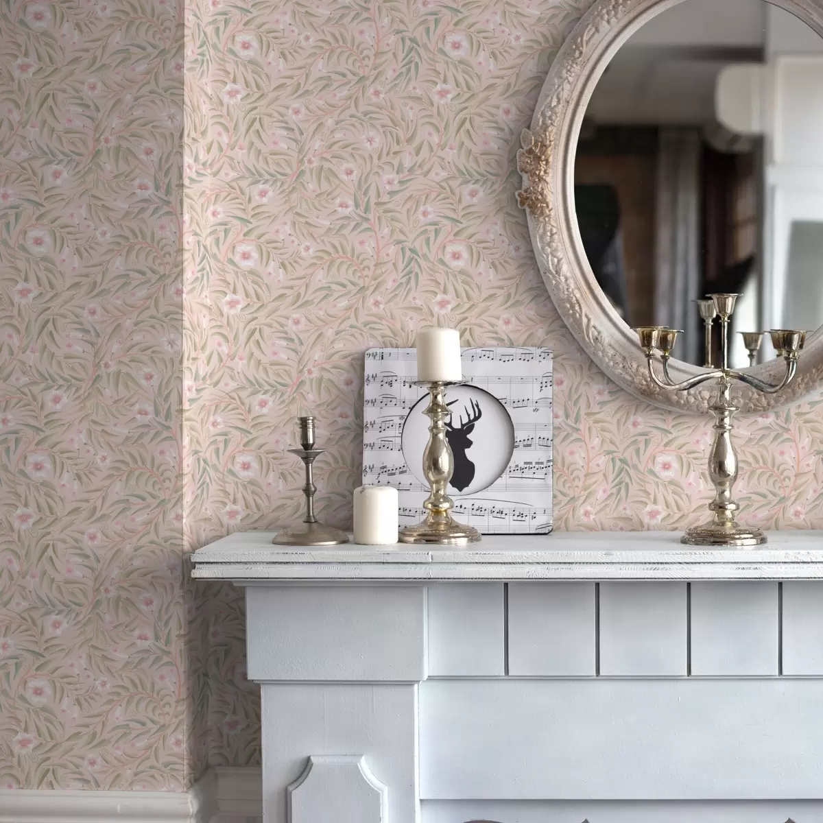 Papel pintado Delicadas flores rosadas y hojas suaves sobre un fondo pastel Nr. a00788