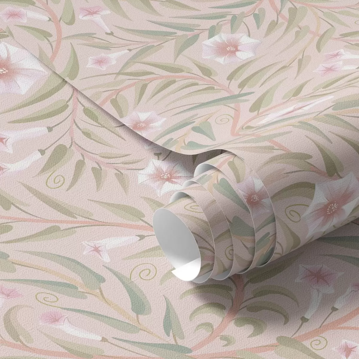 Papel pintado Delicadas flores rosadas y hojas suaves sobre un fondo pastel Nr. a00788