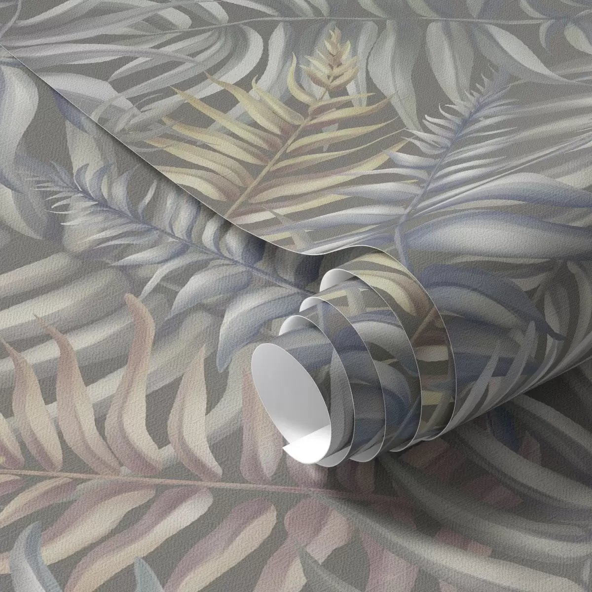 Papel pintado Hojas de palmera en capas en tonos apagados Nr. a00789