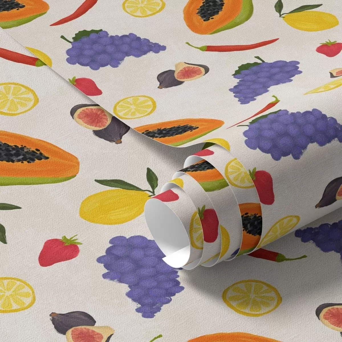 Papel pintado Papaya, uvas y limones: una mezcla de frutas de colores vivos Nr. a00803