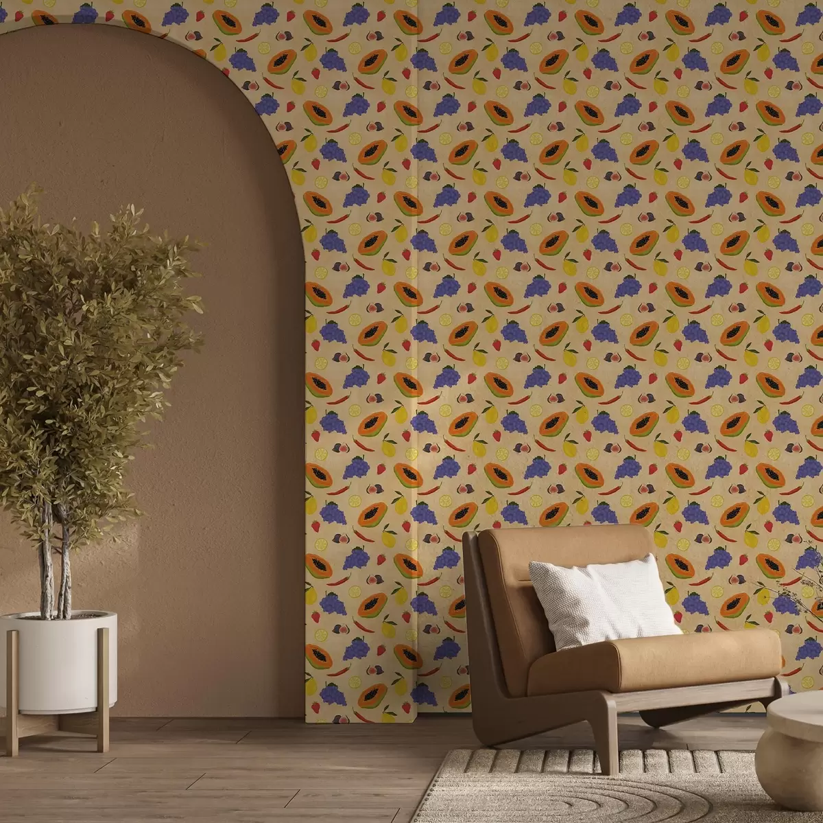 Papel pintado Papaya, cítricos y bayas sobre un fondo cálido y rico Nr. a00803v1