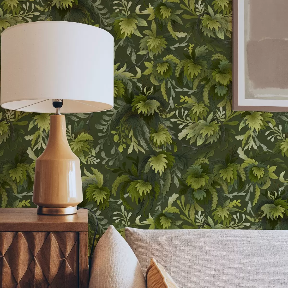 Papel pintado Denso follaje verde sobre un fondo verde oscuro Nr. a00805