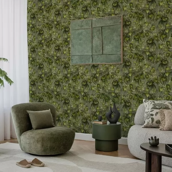 Papel pintado Denso follaje verde sobre un fondo gris verdoso Nr. a00805v1