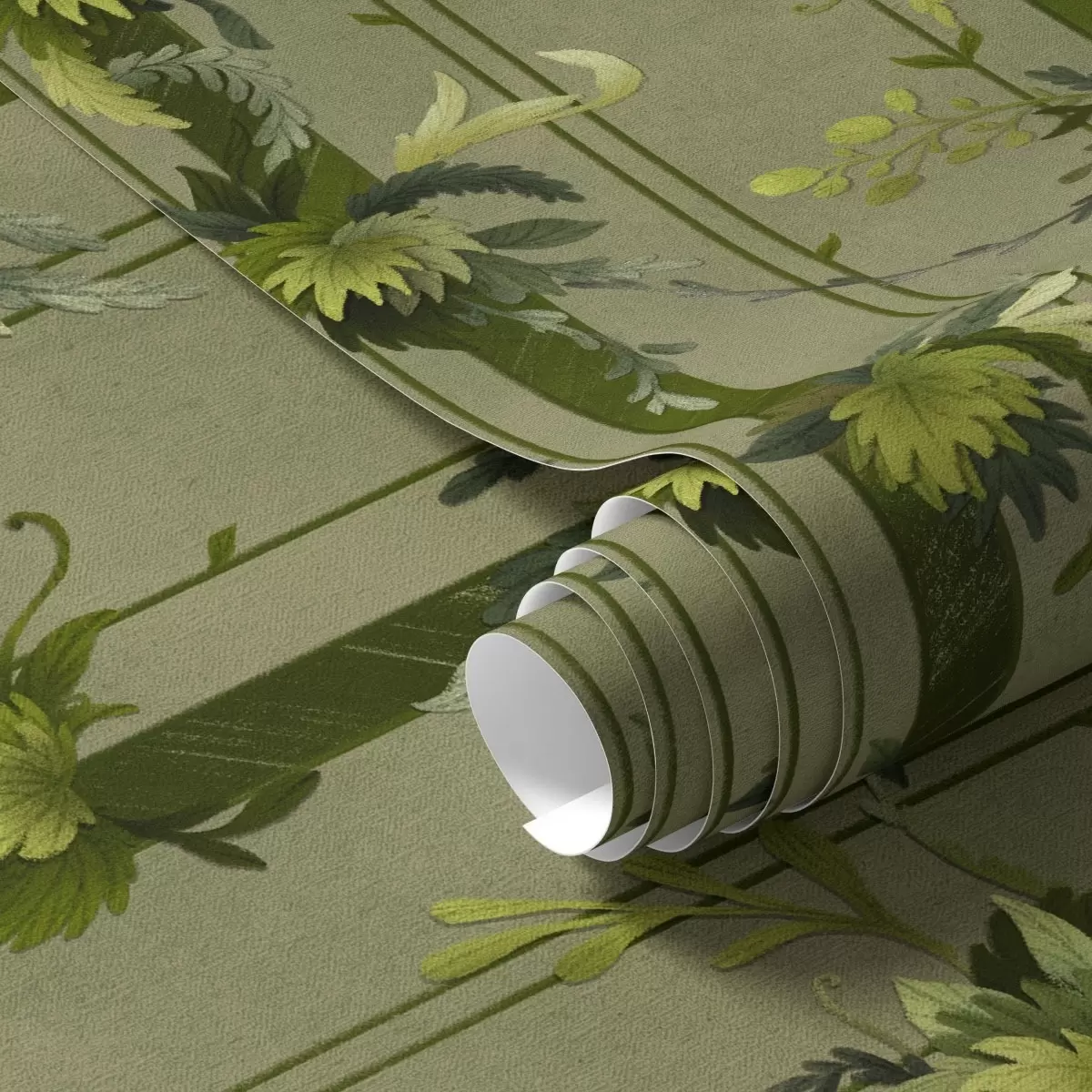 Papel pintado Hojas y racimos de vid en tonos acuarela verde claro Nr. a00807