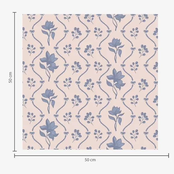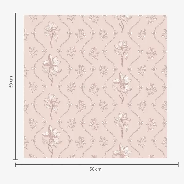 Papel pintado Pequeñas flores y cintas en suaves tonos rosa y beige Nr. a00808