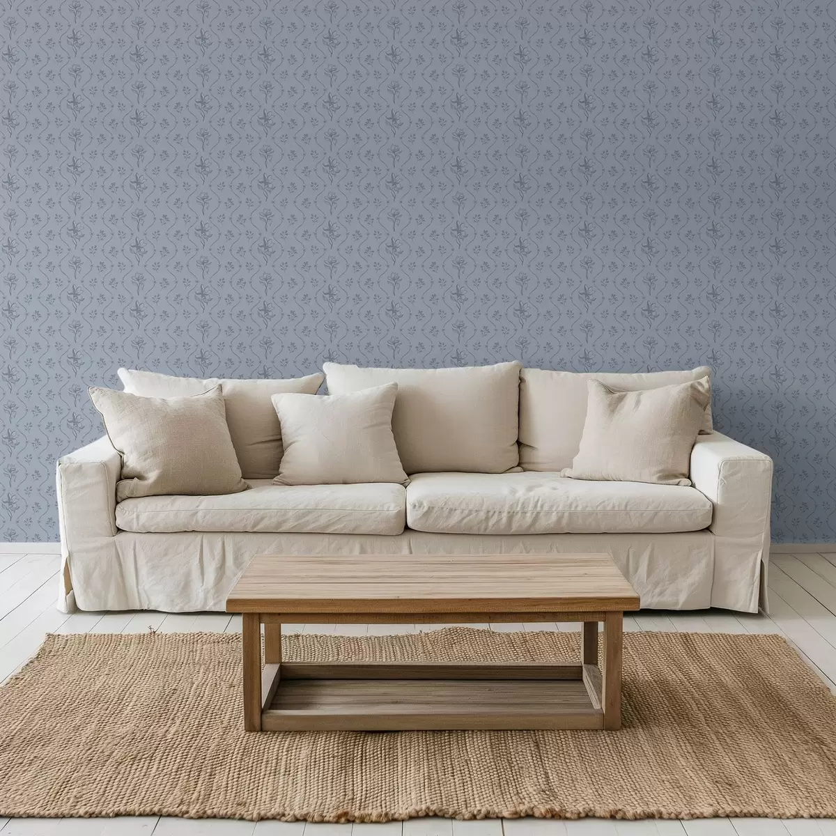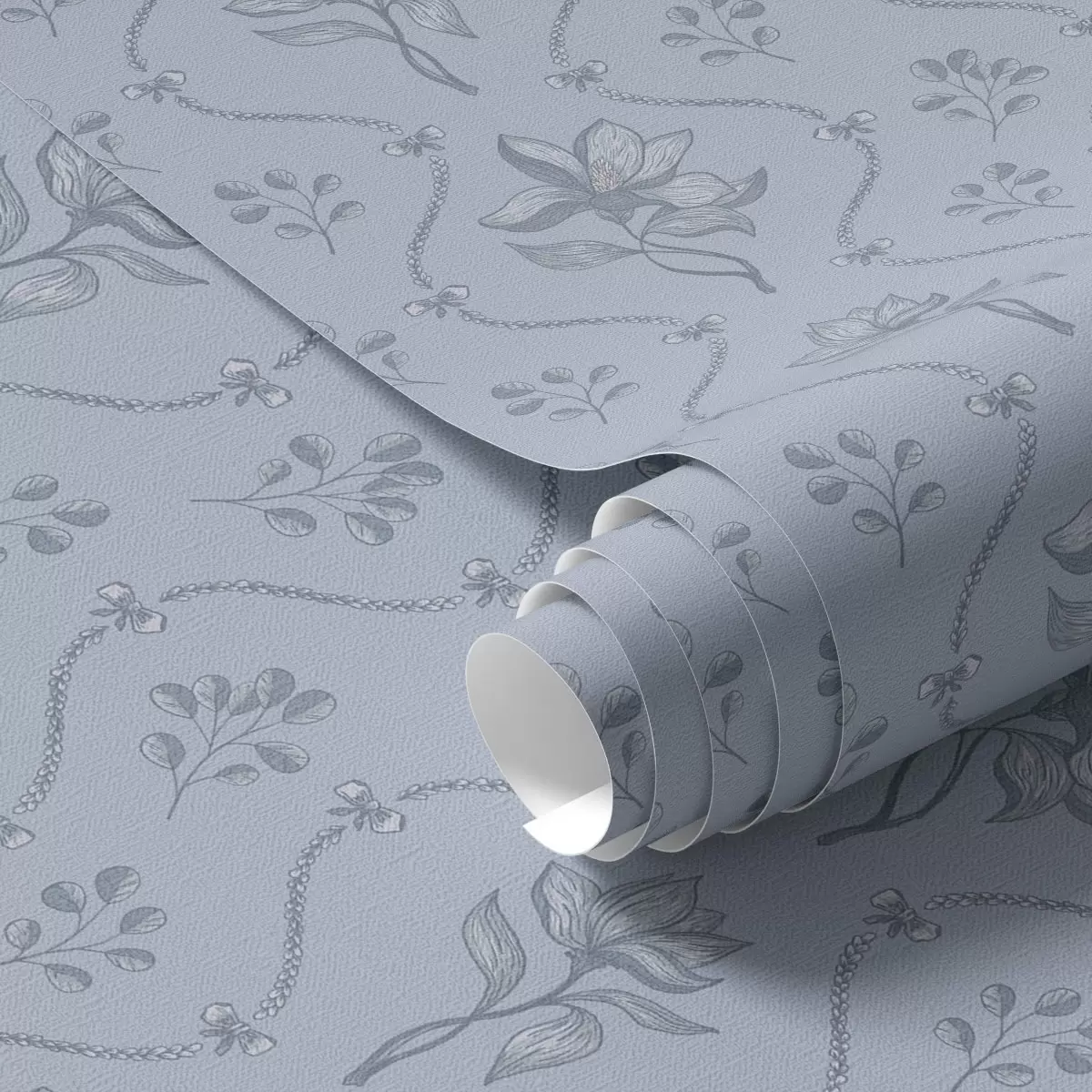 Papel pintado Pequeñas flores y cintas en tonos gris azulado Nr. a00808v2