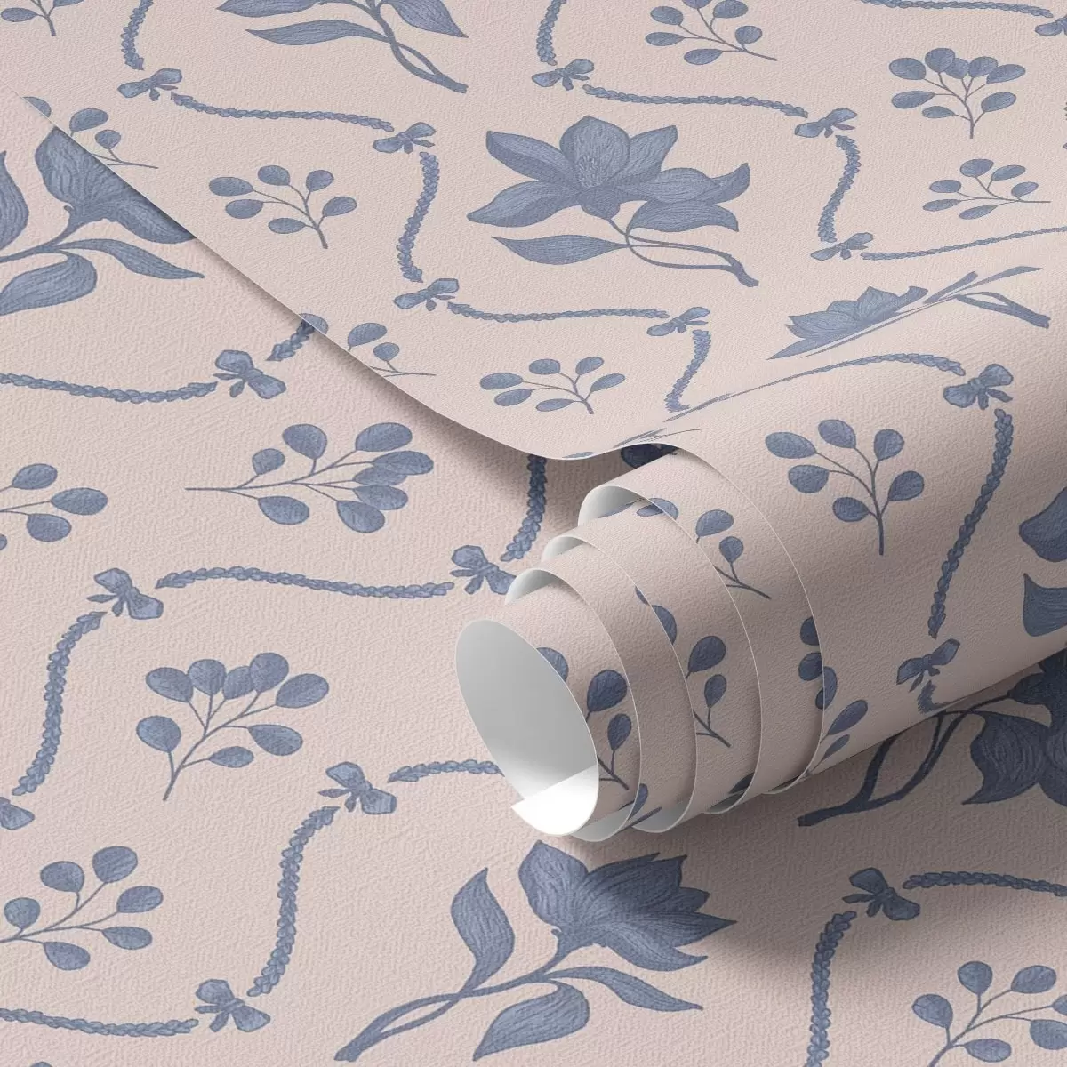 Papel pintado Pequeñas flores y cintas en tonos azules y rosas Nr. a00808v3