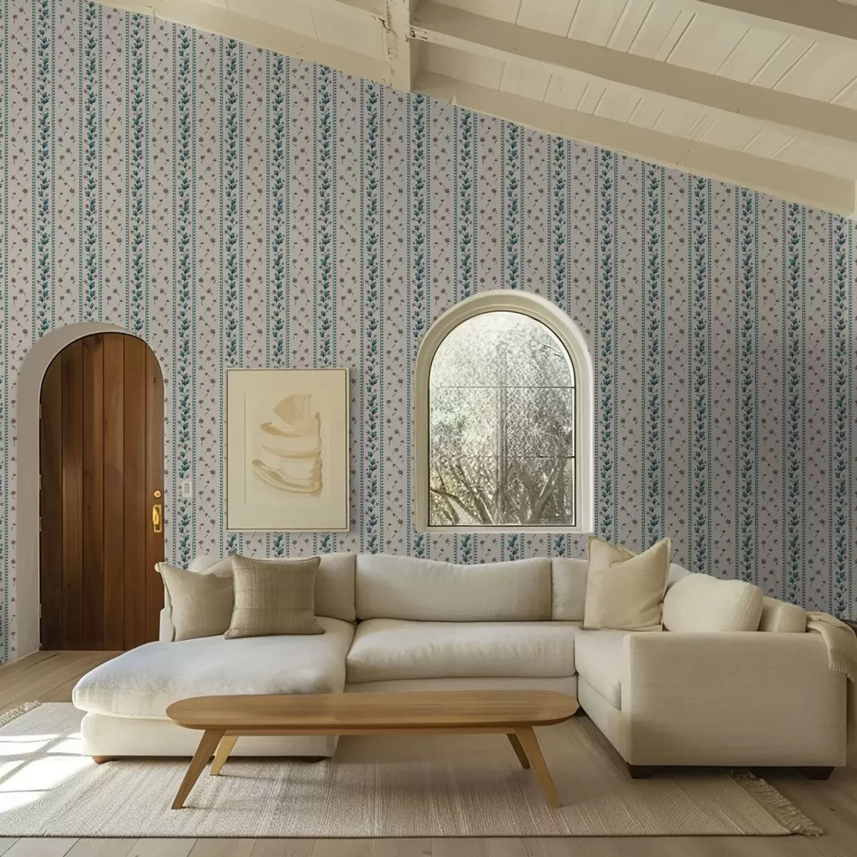 Papel pintado Rayas florales verticales en tonos azul y marrón Nr. a00811v1