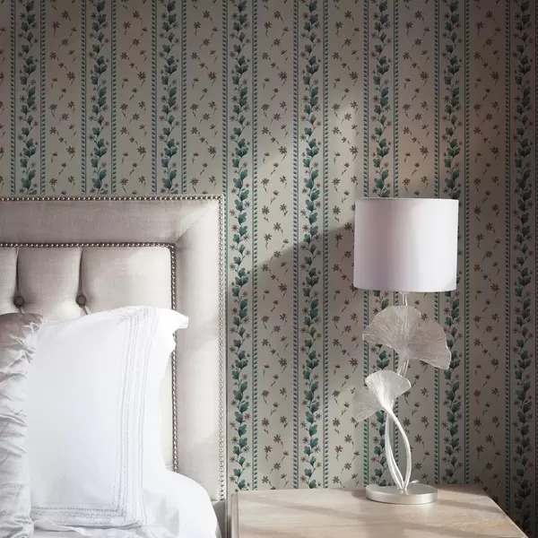 Papel pintado Rayas florales verticales en tonos azul y marrón Nr. a00811v1