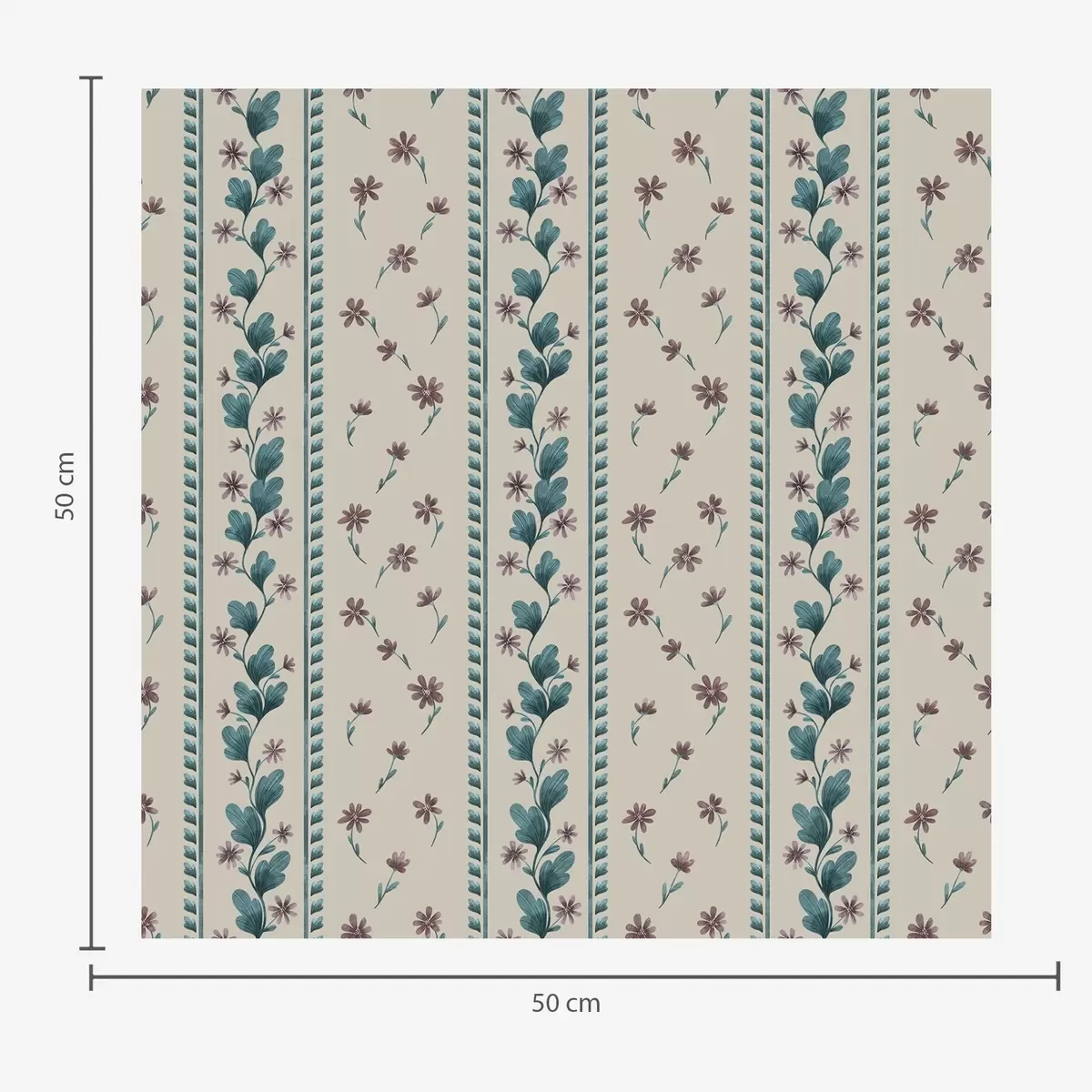 Papel pintado Rayas florales verticales en tonos azul y marrón Nr. a00811v1