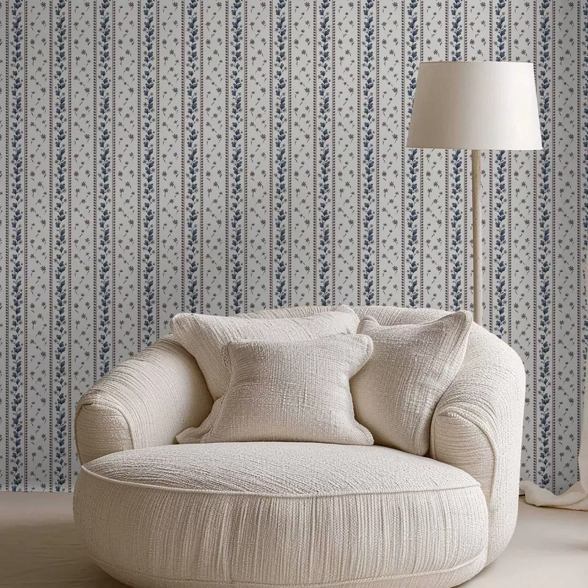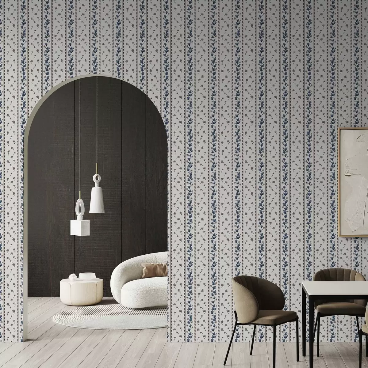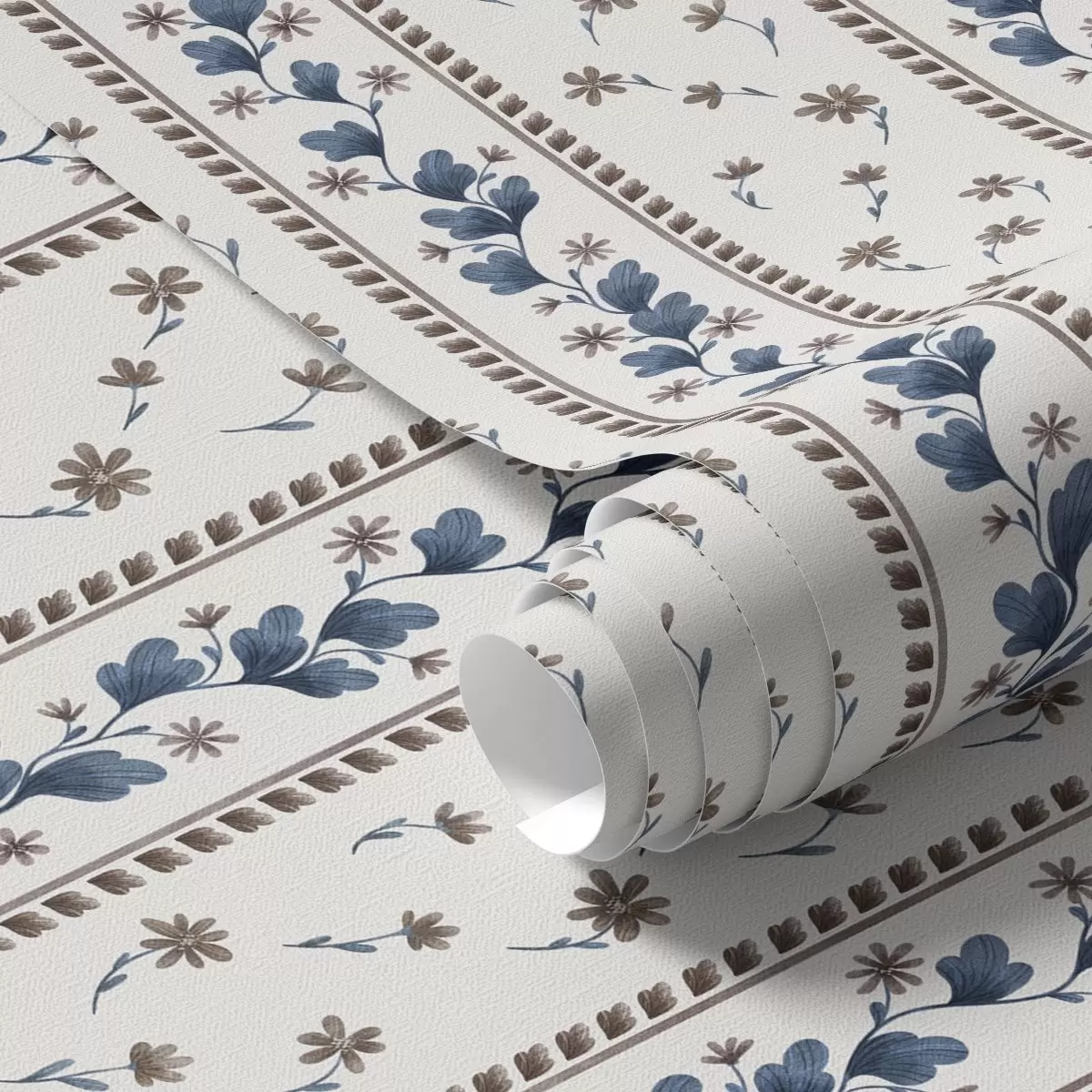 Papel pintado Rayas florales verticales en tonos azul y marrón Nr. a00811v2