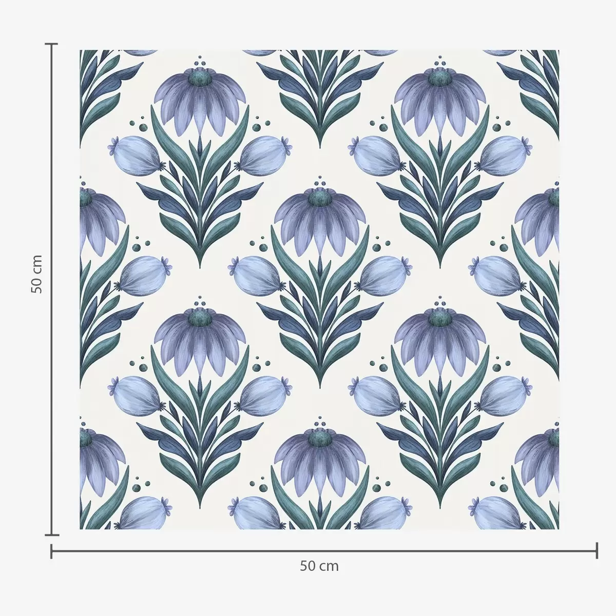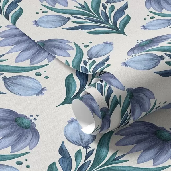 Papel pintado Adorno floral simétrico en tonos azul y blanco Nr. a00812v2