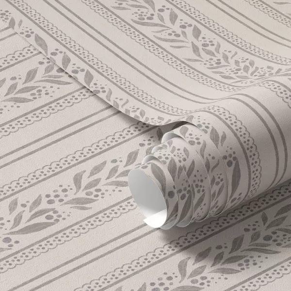 Papel pintado Rayas con encaje y ramitas gris-beige Nr. a00814