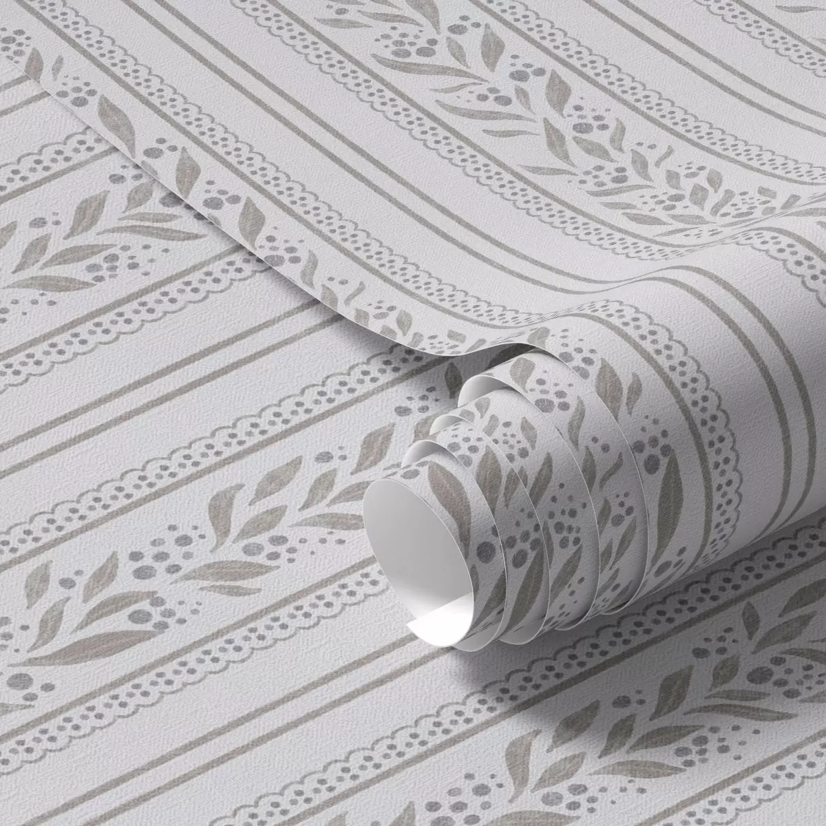 Papel pintado Rayas con encaje y ramitas en blanco frío Nr. a00814v1