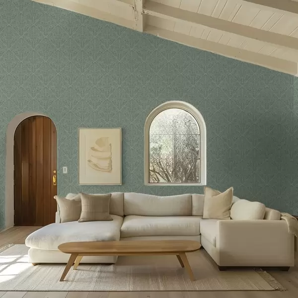 Papel pintado Damasco botánico fino en verde apagado Nr. a00815v1