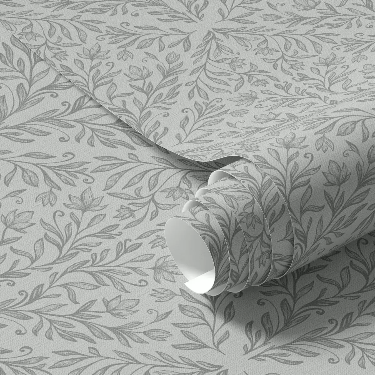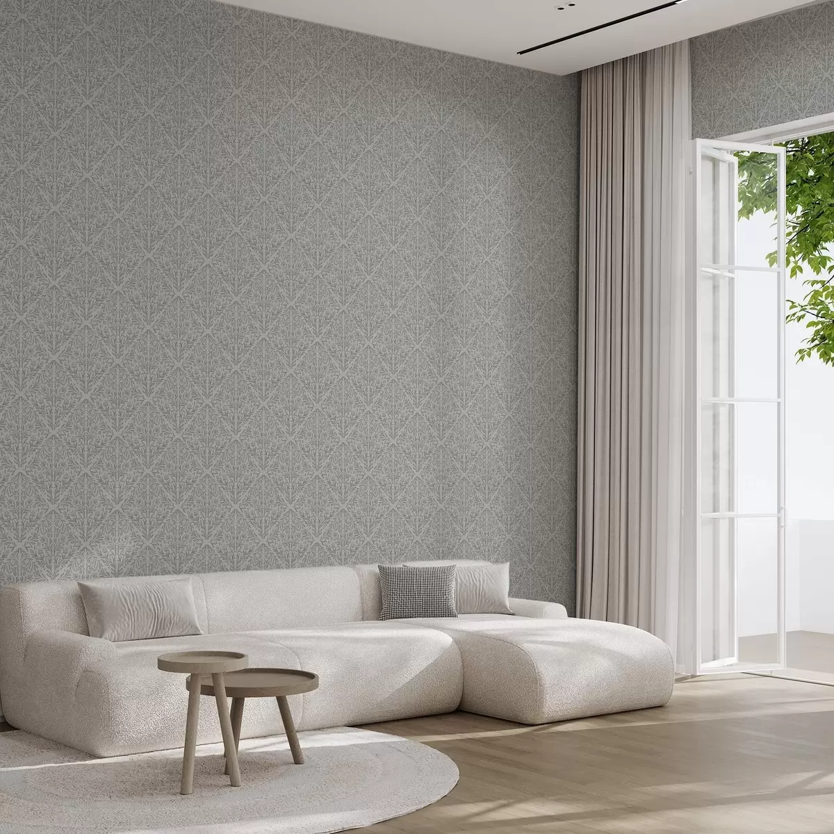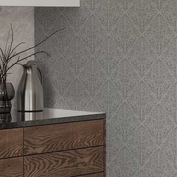 Papel pintado Damasco botánico en gris claro con contorno suave Nr. a00815v2