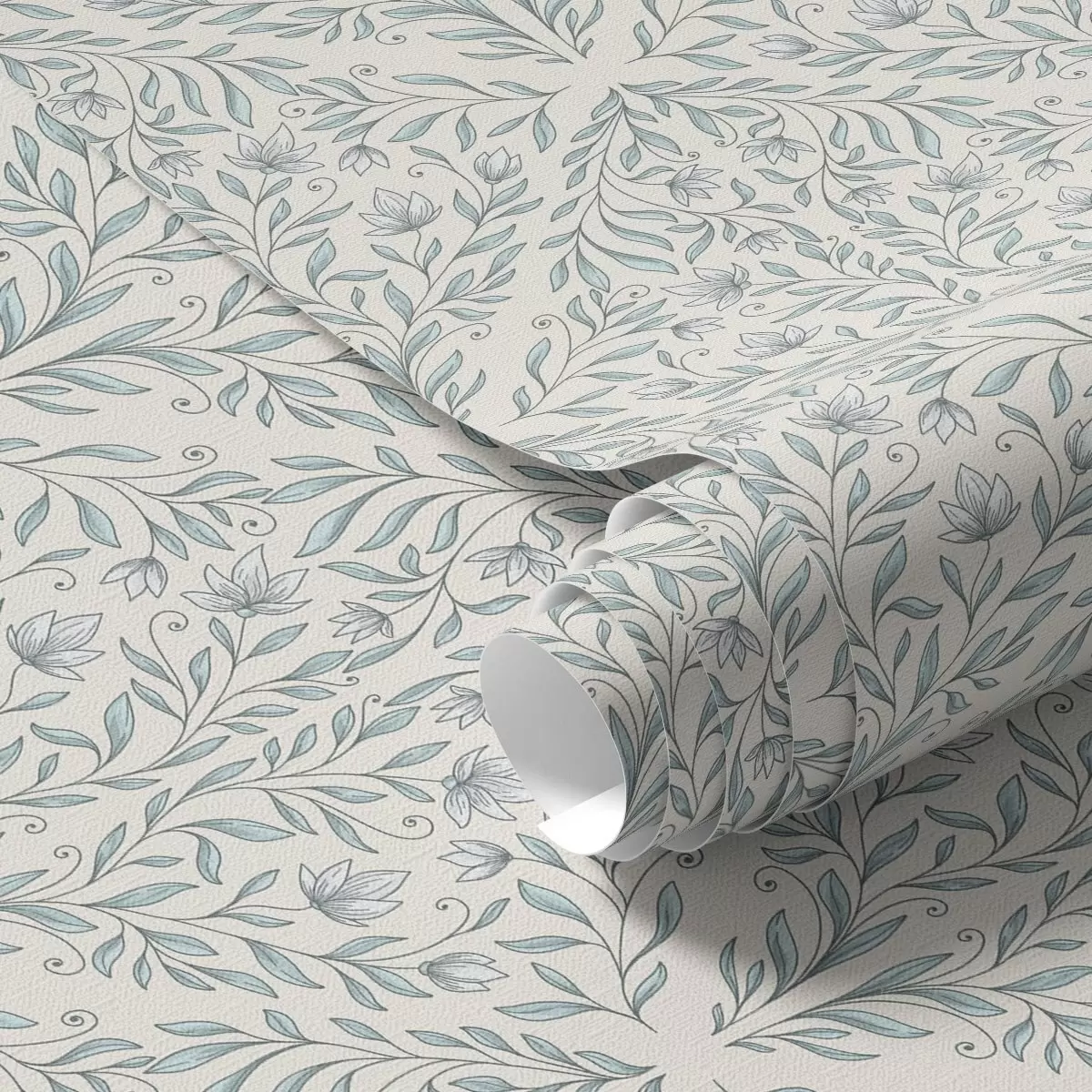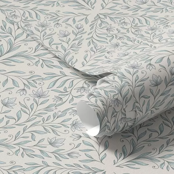 Papel pintado Lacy dispara sobre fondo blanco crema con contorno turquesa Nr. a00815v4