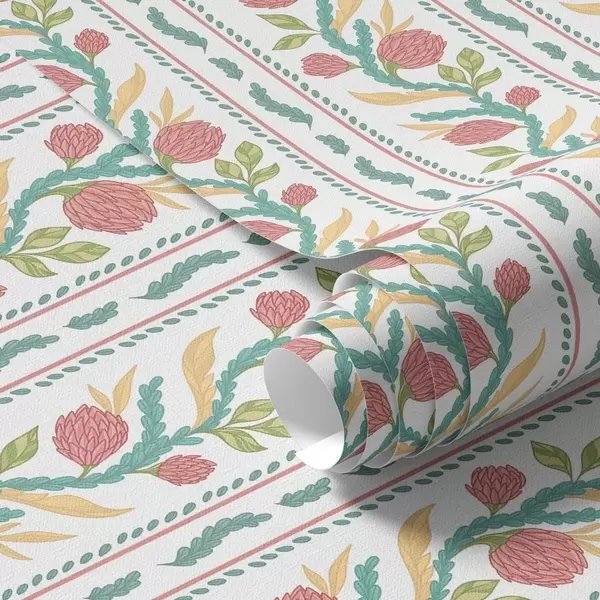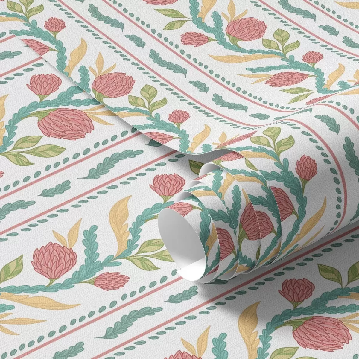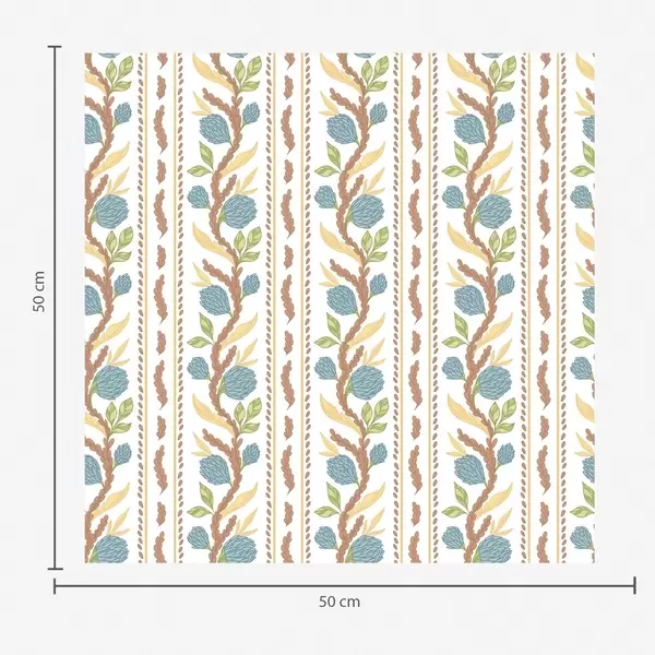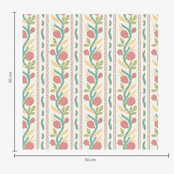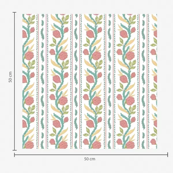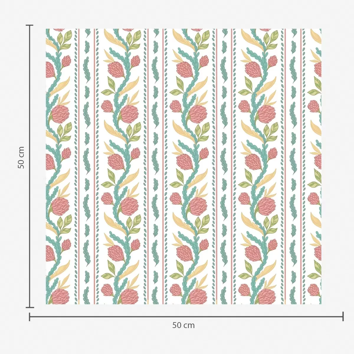 Papel pintado Rayas verticales con flores de coral y hojas turquesas. Nr. a00816