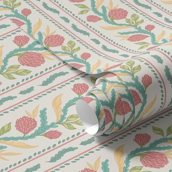 Papel pintado Rayas con capullos de coral sobre fondo crema claro. Nr. a00816v1