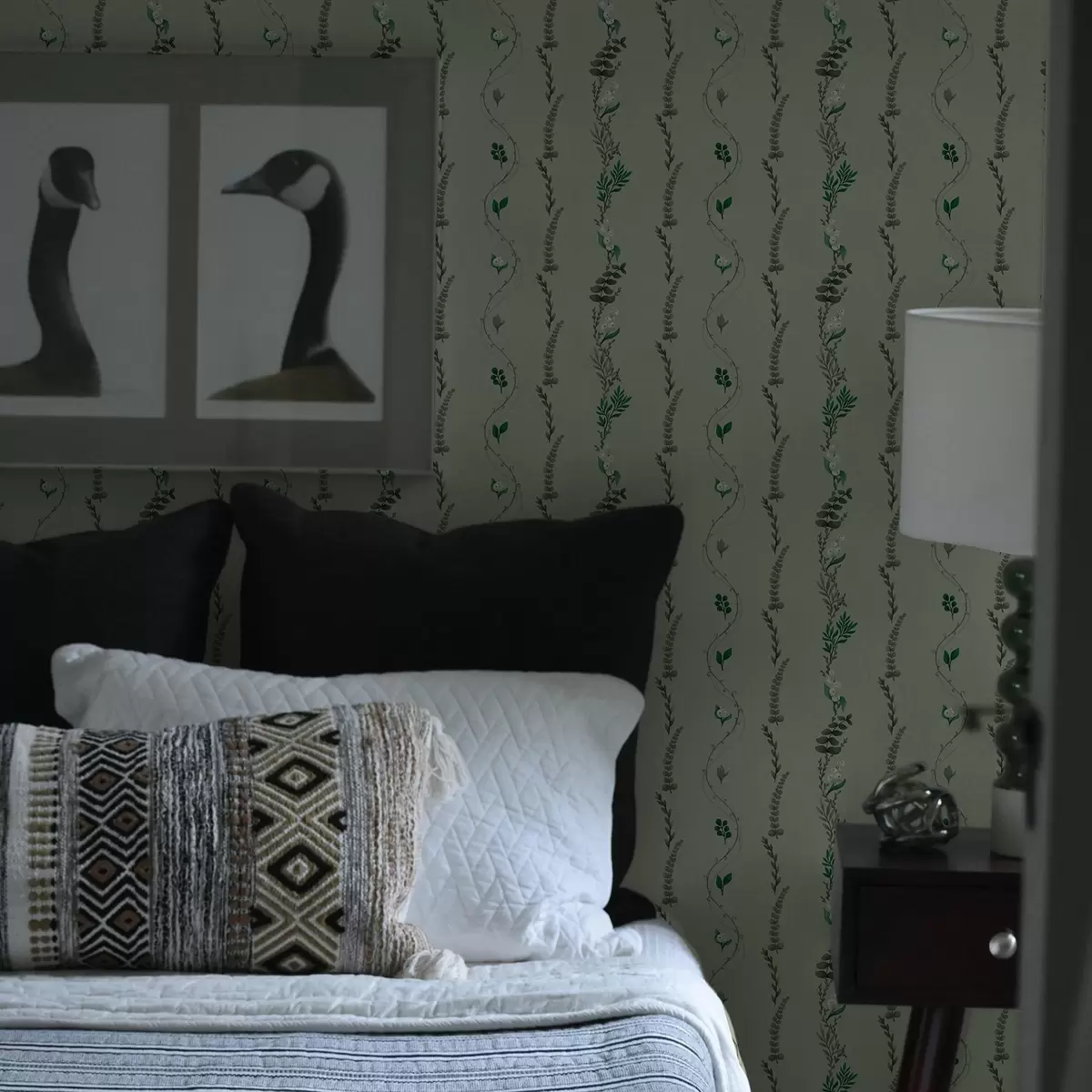 Papel pintado Enredaderas verticales y ramitas en verde apagado Nr. a00817v1