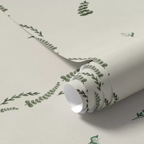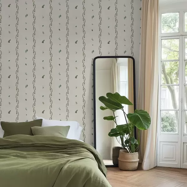 Papel pintado Brotes verdes dispersos en un ritmo vertical, fondo crema. Nr. a00818