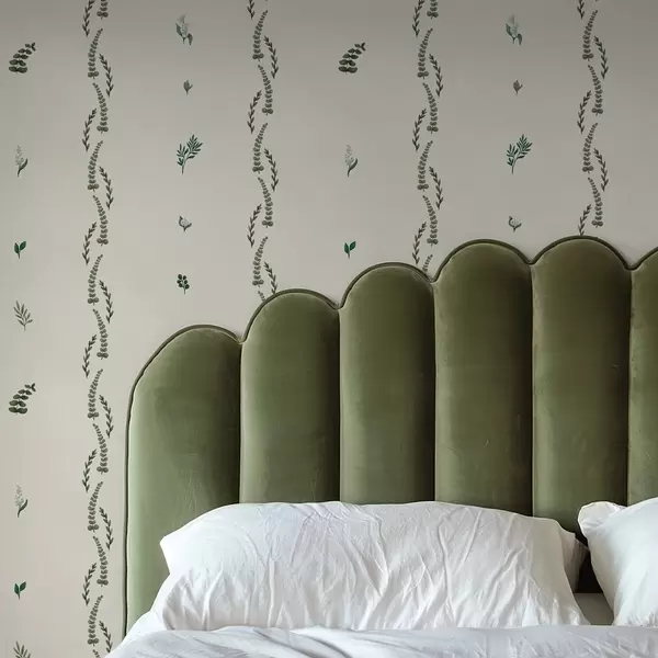 Papel pintado Brotes verdes dispersos en un ritmo vertical, fondo crema Nr. a00818