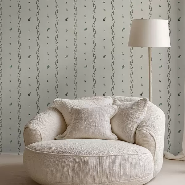 Papel pintado Brotes verdes dispersos en un ritmo vertical, fondo crema Nr. a00818
