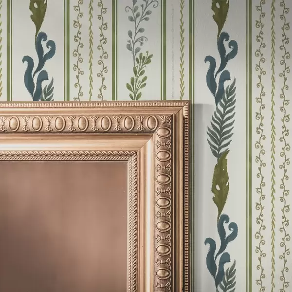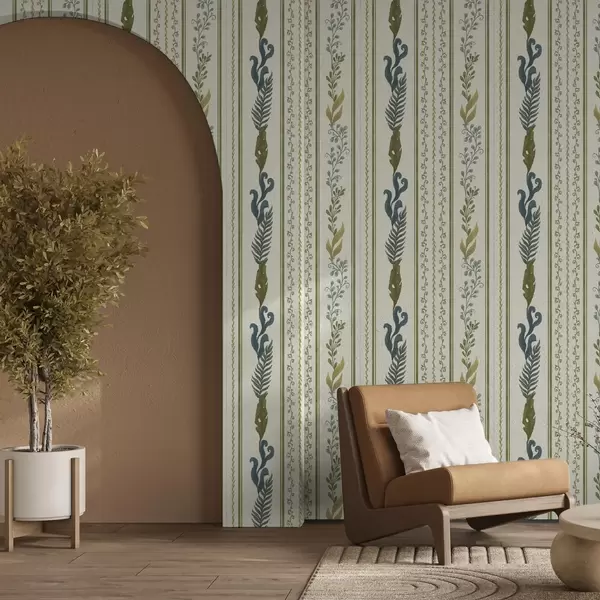 Papel pintado Rayas con adornos en espiral y grandes ramas en tonos verdes Nr. a00823