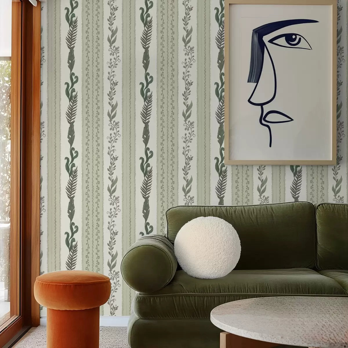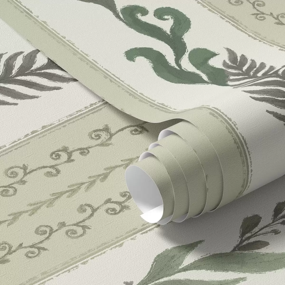 Papel pintado Rayas con ramificaciones en tonos verdes y grises, contraste suave Nr. a00824