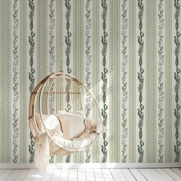 Papel pintado Rayas con ramificaciones en tonos verdes y grises, contraste suave Nr. a00824