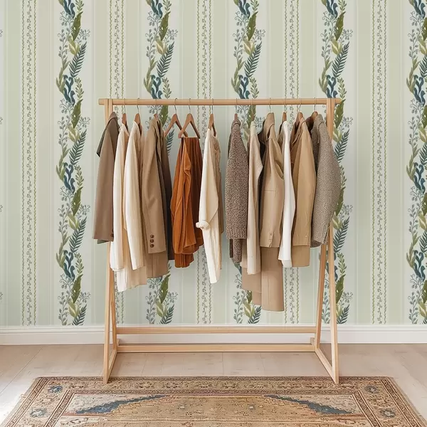Papel pintado Rayas anchas con ramas pictóricas en tonos azul oliva Nr. a00825