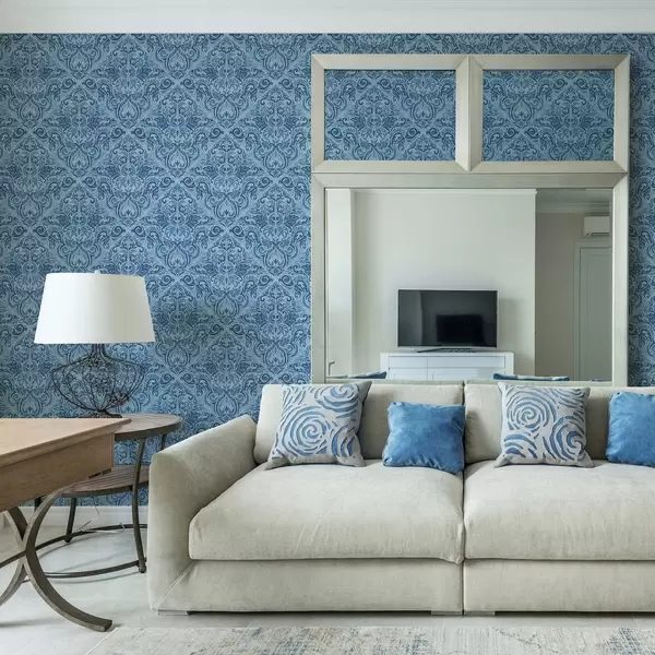 Papel pintado Damasco en tonos azules fríos, contraste más fuerte Nr. a00826v2