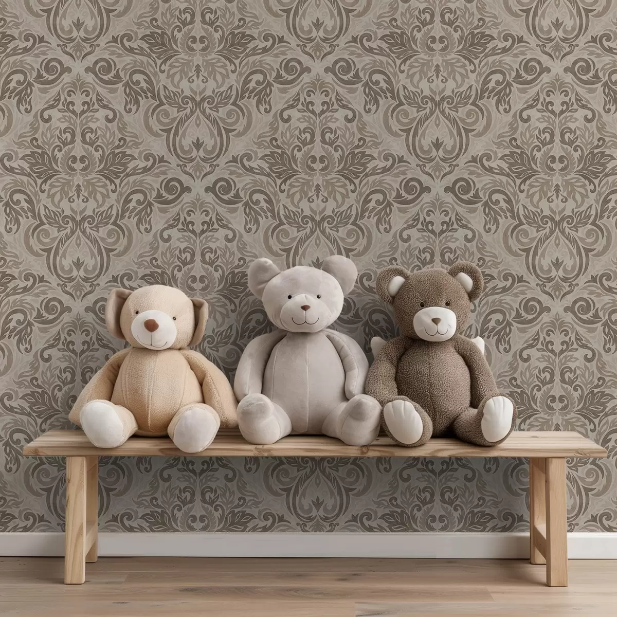 Papel pintado Damasco en tonos cálidos gris-marrón sobre fondo claro Nr. a00826v3