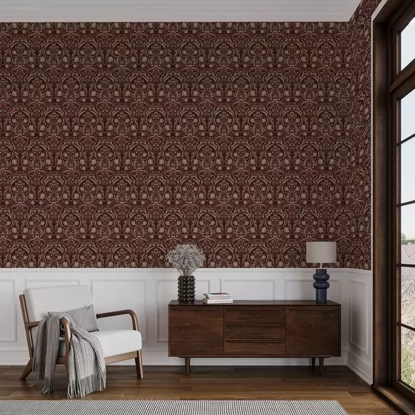 Papel pintado Adorno de tulipán, fondo burdeos intenso Nr. a00827v2
