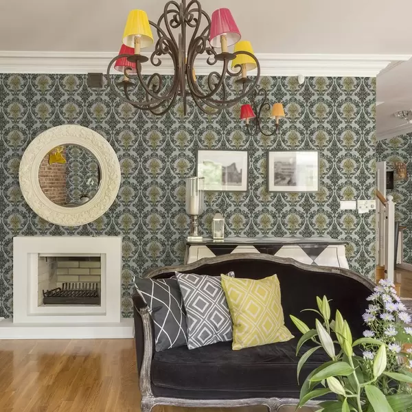 Papel pintado Damasco con volutas verdes sobre fondo claro Nr. a00828v1