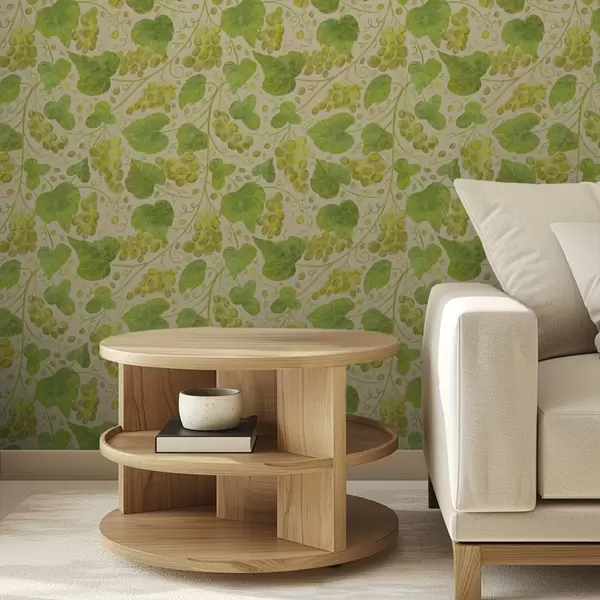 Papel pintado Uvas y hojas verdes sobre fondo claro Nr. a00834