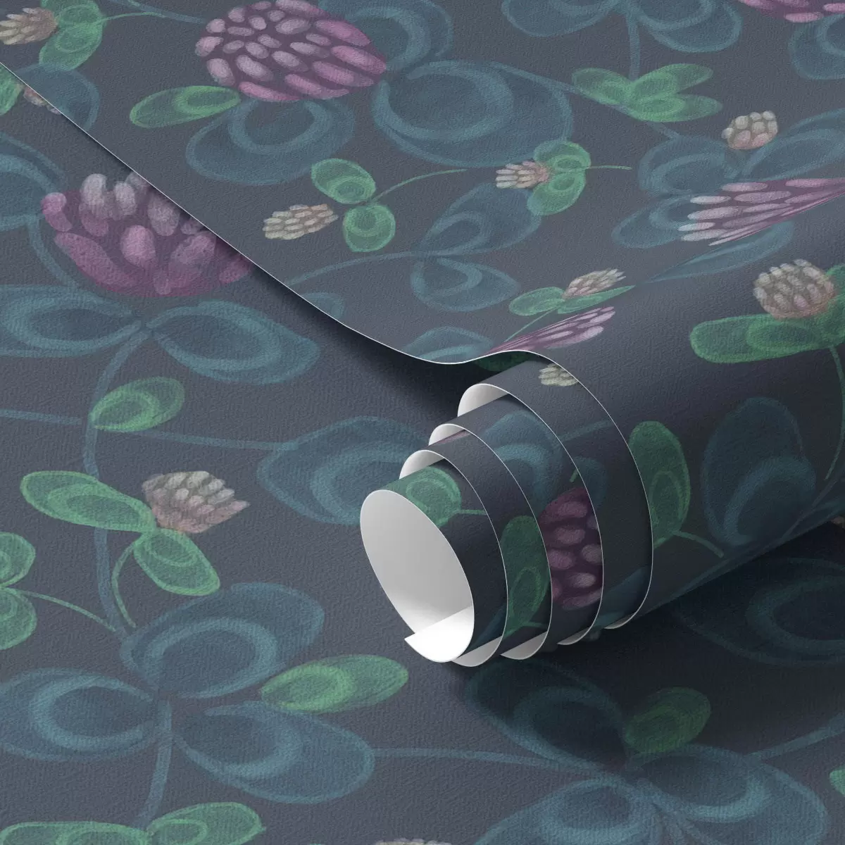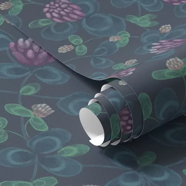 Papel pintado Trébol con flores moradas sobre fondo azul oscuro Nr. a00836