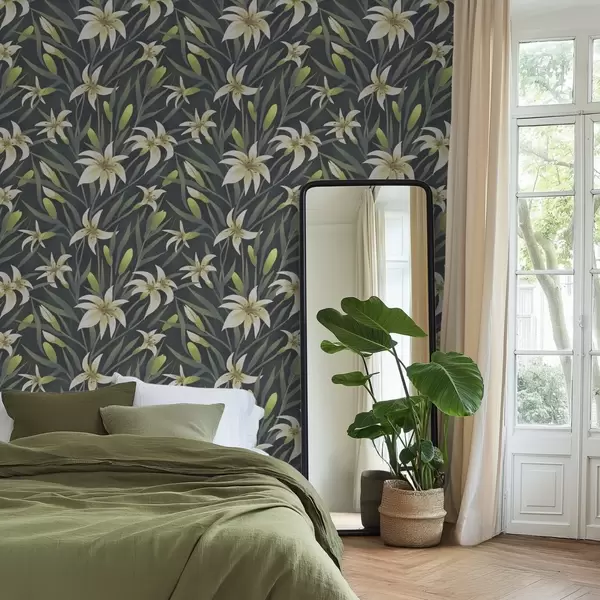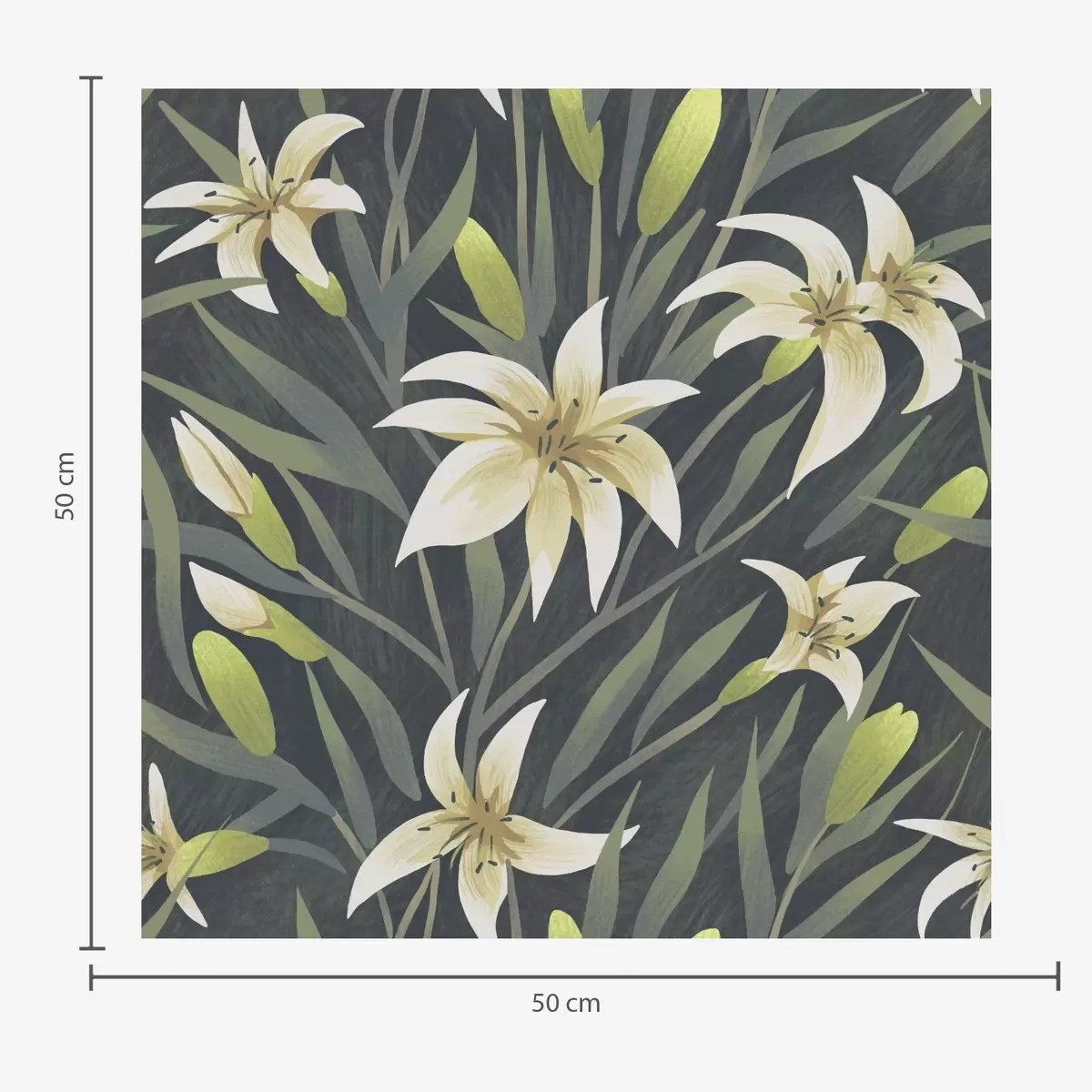 Papel pintado Lirios crema con hojas sobre fondo oscuro Nr. a00837v1