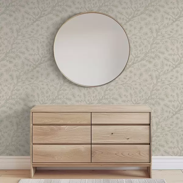Papel pintado Ramitas de pino en tonos verde claro sobre fondo beige Nr. a00838v1