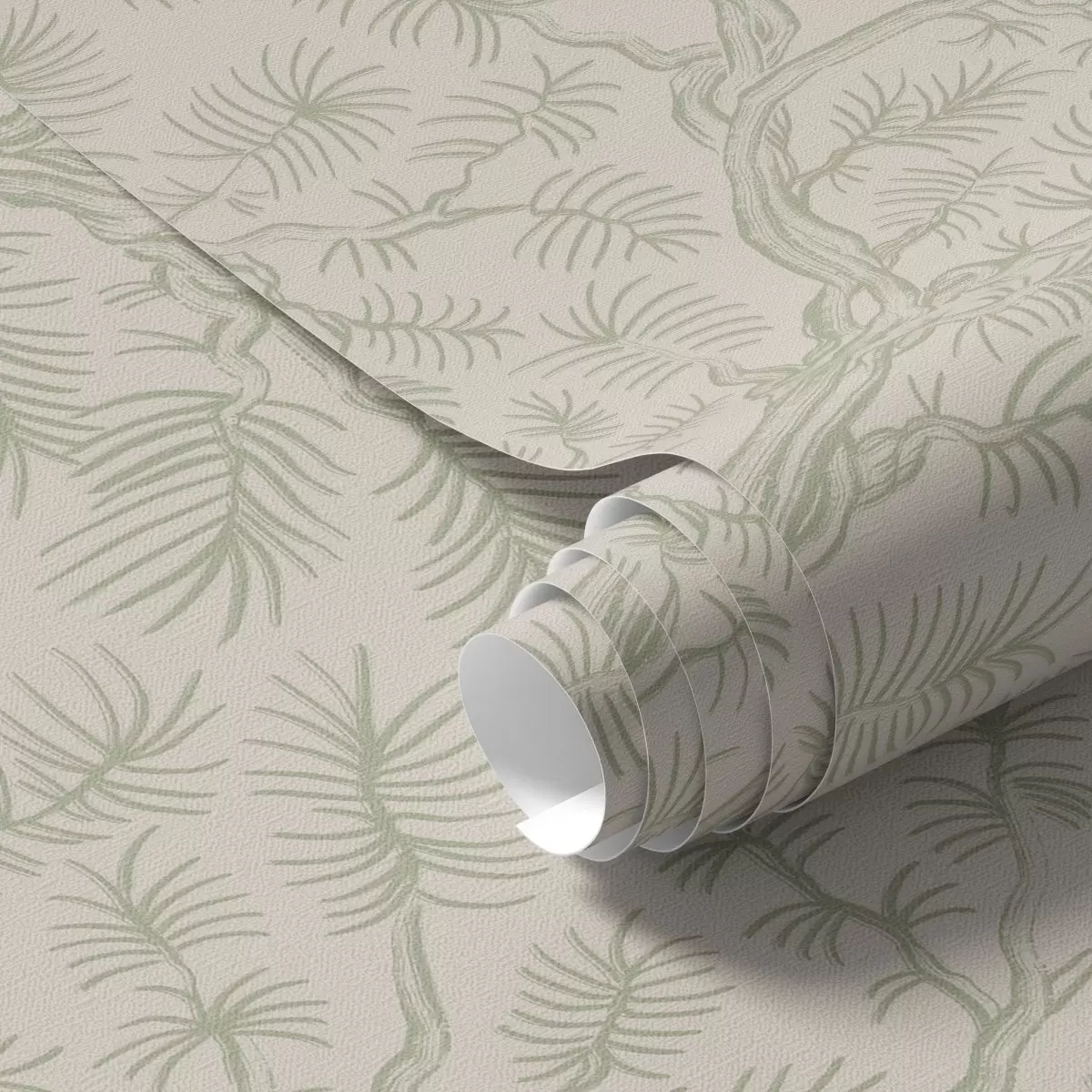 Papel pintado Ramitas de pino en tonos verde claro sobre fondo beige Nr. a00838v1
