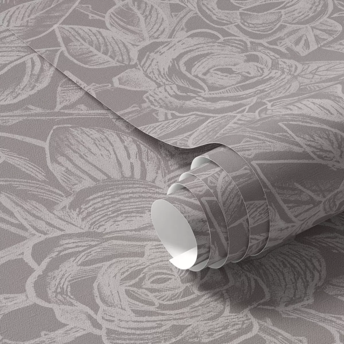 Papel pintado Rosas grabadas en marrón grisáceo oscuro Nr. a00841