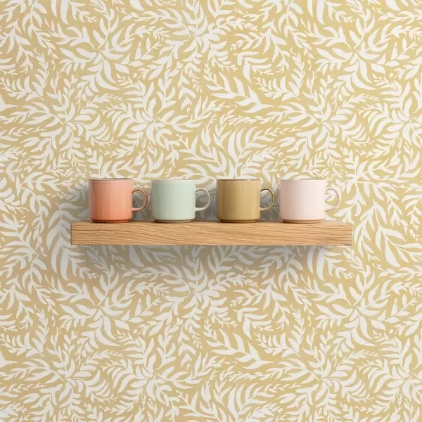 Papel pintado Patrón de hojas blancas sobre ocráceo cálido, ritmo arremolinado Nr. a00845