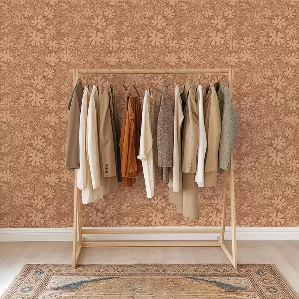 Papel pintado Hojas y hierbas del campo en una paleta de colores terracota y beige Nr. a00847