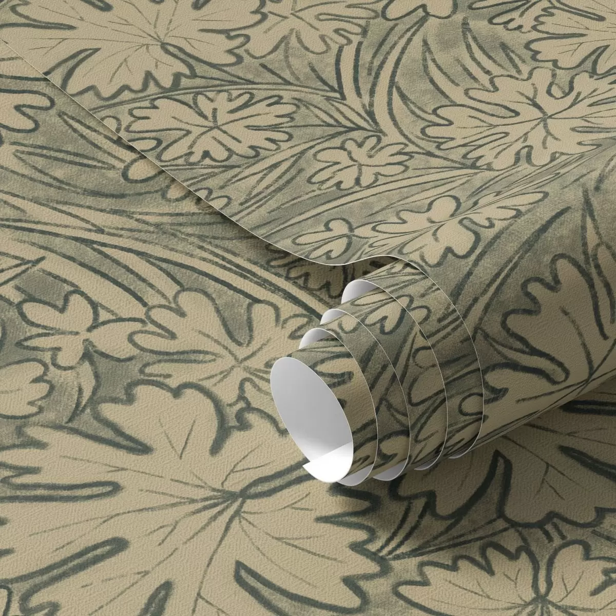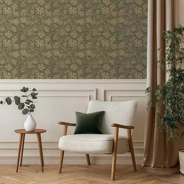 Papel pintado Hojas y hierbas de campo en tonos gris oliva Nr. a00847v1
