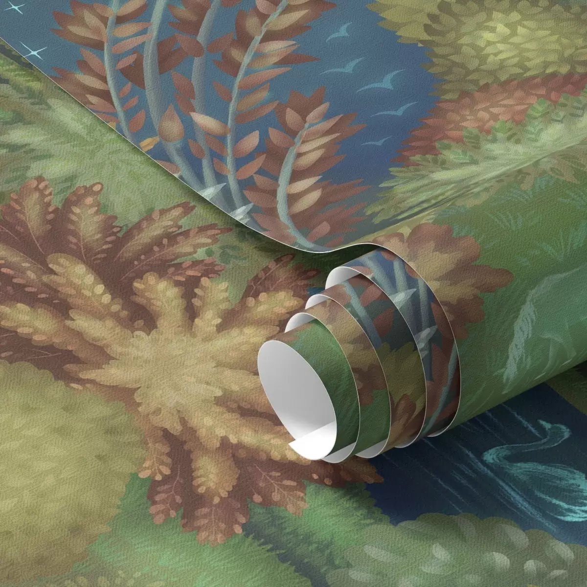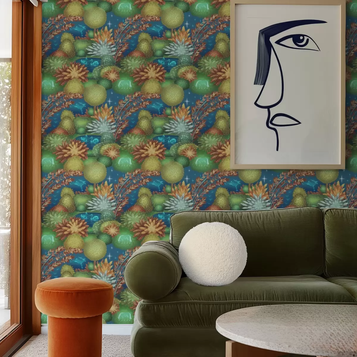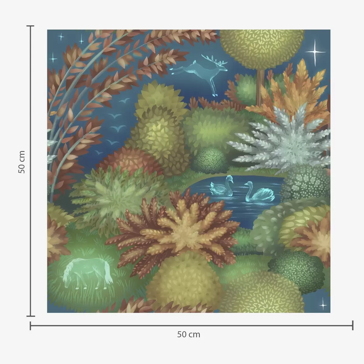 Papel pintado Jardín nocturno de cuento de hadas con un lago y animales luminosos. Nr. a00851