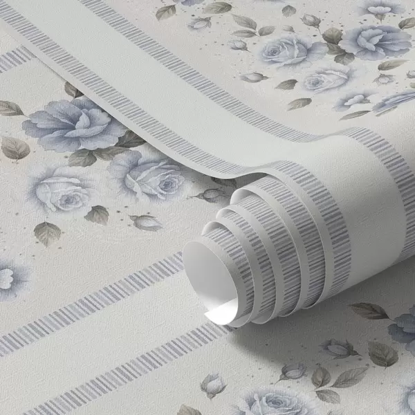 Papel pintado Rosas azules en bandas verticales sobre fondo claro. Nr. a00860