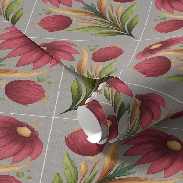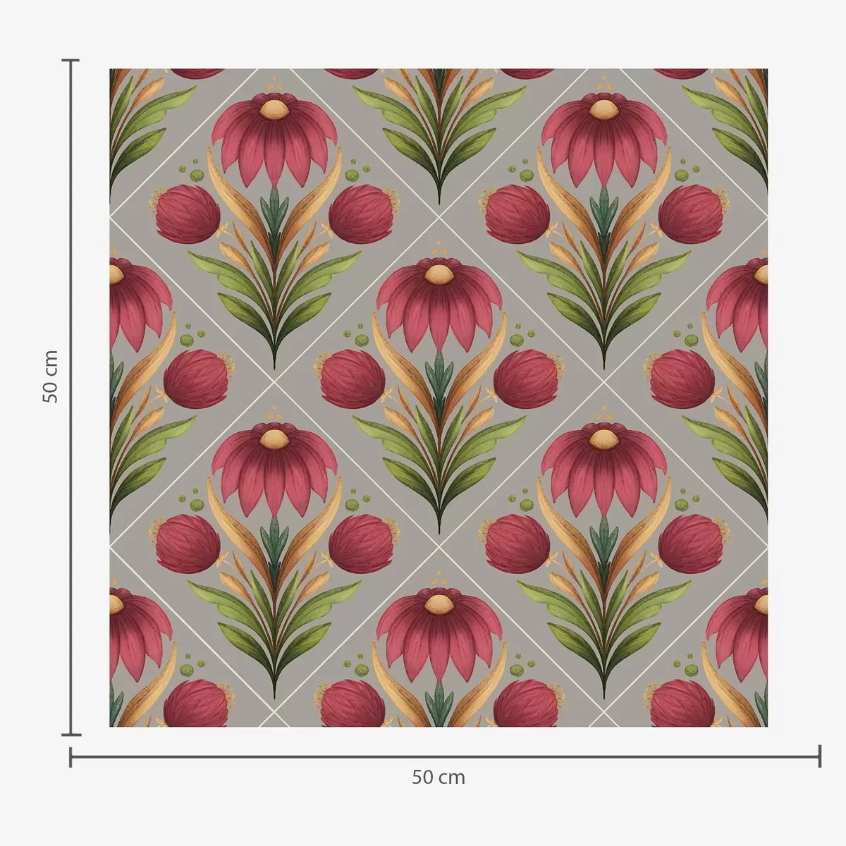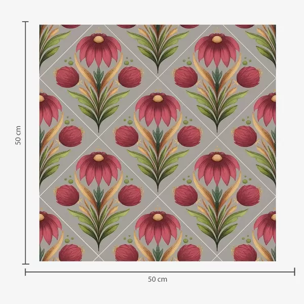 Papel pintado Adorno floral simétrico sobre fondo gris con diagonales Nr. a00869
