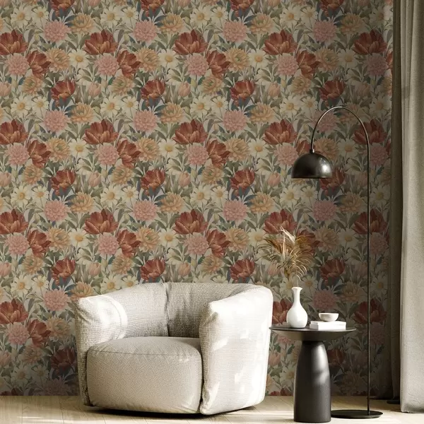Papel pintado Flores vintage de jardín en cálidos tonos terracota y melocotón Nr. a00874